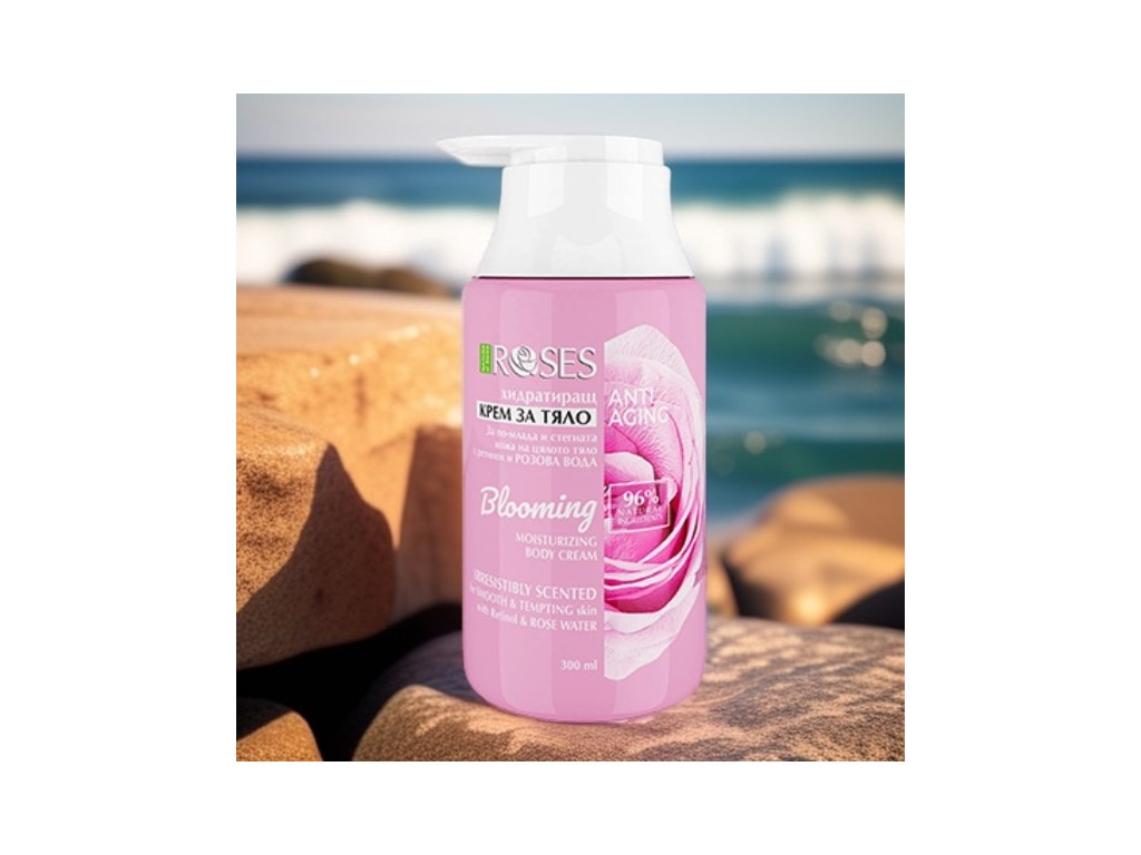 BLOOMING hydratačný telový krém anti-aging s ružovou vodou a retinolom 300 ml
