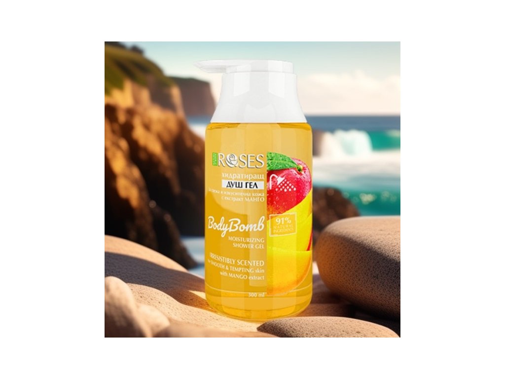 ROSES Hydratačný sprchový gél s extraktom z manga pre sviežu a hydratovanú pokožku. Objem 300ml - 30,67 €/1l